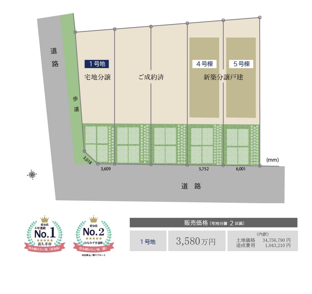 | 分譲価格 | 1号地:3,580万円 |
